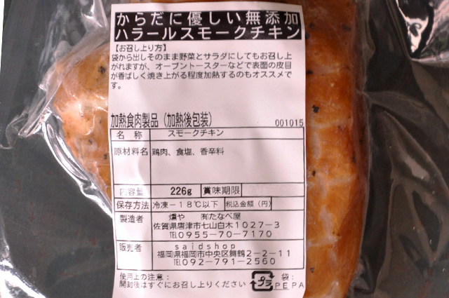 Additive-free Halal Smoked Chicken/からだに優しい無添加ハラールスモークチキン(201g~240g)