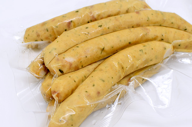 次回製造分からプレミアムチキンソーセージに使用していた羊の腸の高騰により、人口ケーシングに変更させていただきます。
