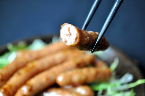 次回製造分からプレミアムチキンソーセージに使用していた羊の腸の高騰により、人口ケーシングに変更させていただきます。