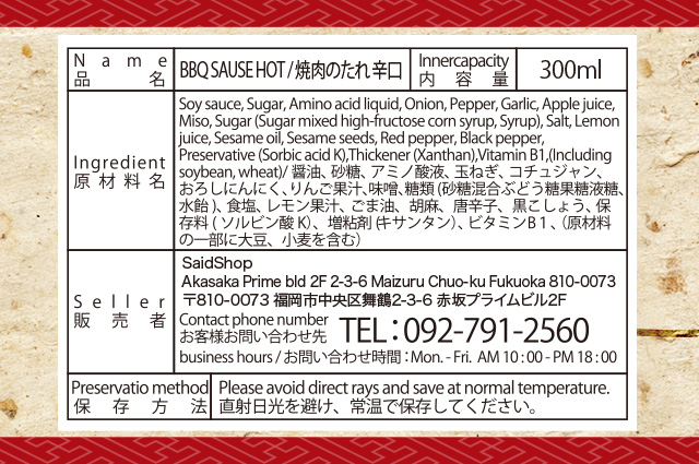 2019/04/10 BBQ SAID SAUCE/焼肉のタレ 300ml入荷について/BBQ SAID SAUCE / 300ml stock of grilled meat sauce